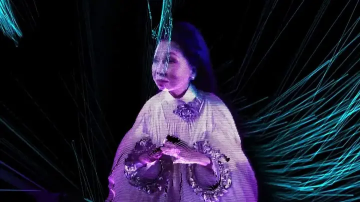 Artist Bach Tuyet's point-cloud imagery uses volumetric filming techniques, and some scenes use Ai effects.